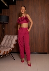 Calça Cintura Alta em Crepe. Modelagem Reta e Duas Pregas Frontais. Fechamento Frontal por Zíper e Colchetes.